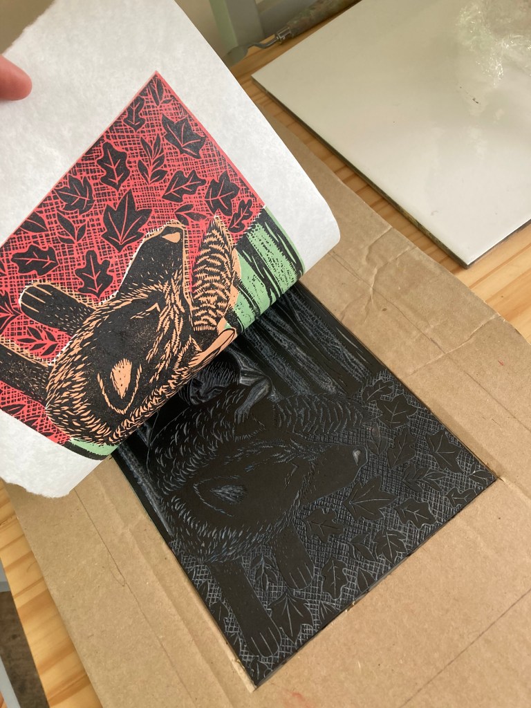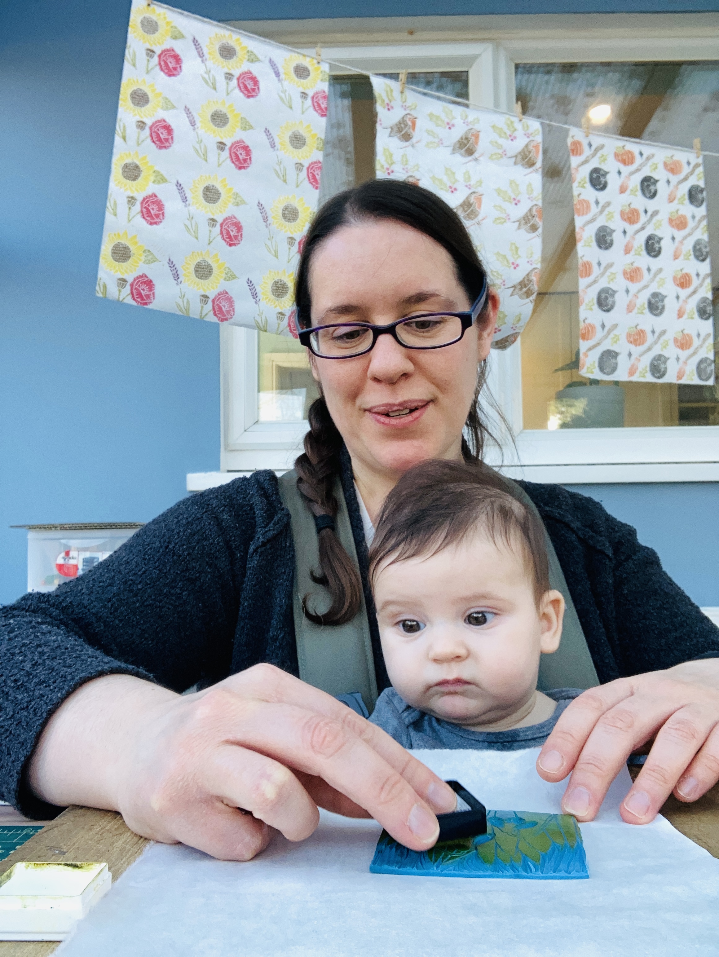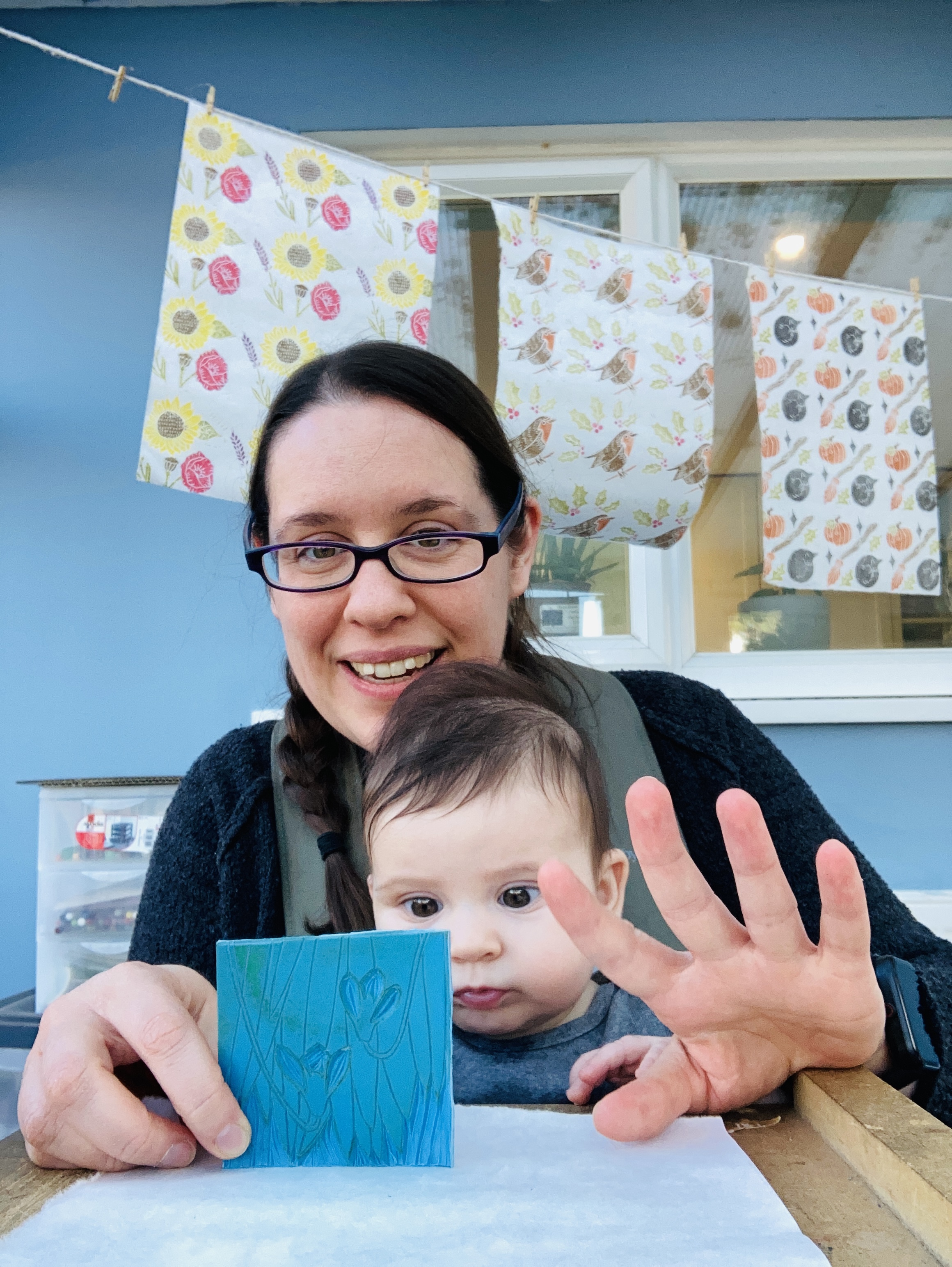 My aim for this year is to find my way with juggling a creative practice while being a Mumma too. It’s takes me about a month to get a print completed from start to finish. I have my sketch book next to be while I feed Chloe. I’m balancing the sketchbook on the sofa arm to sketch, then when I have some time to myself, I’ll scan those pages and make a template in photoshop. I have to wait until I have some windows of time to carve and print. Sometimes I can get 10 minutes to do these with Chloe in the baby carrier. I’ve had to change my mind set to working in 10 minute blocks when I have Chloe. Before Chloe I used to think I didn’t ‘have time’ to do anything if I didn’t have at least an hour, now 10 minutes feels like loads of time. I’ve been trying to be super organised, so if my partner can take Chloe on the weekends, I can prep and be ready for these 10 minute Windows.