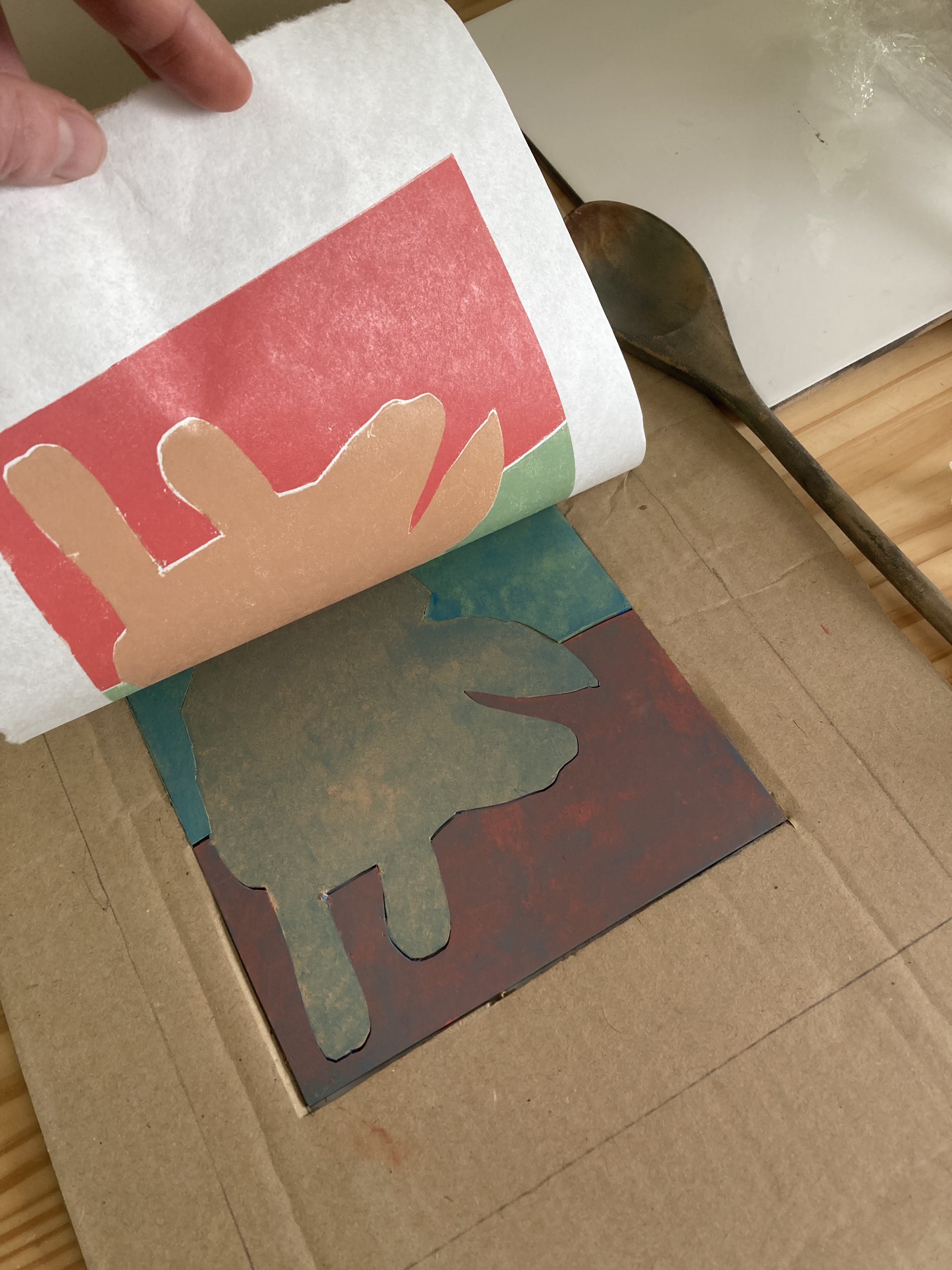 I love working in a limited colour palette. Sometimes it’s using natural colours like greens and oranges, that I see in nature, and other times it’s opposite colours on the colour wheel. Whatever colours I use, I want them to help communicate an emotional tone to the print.