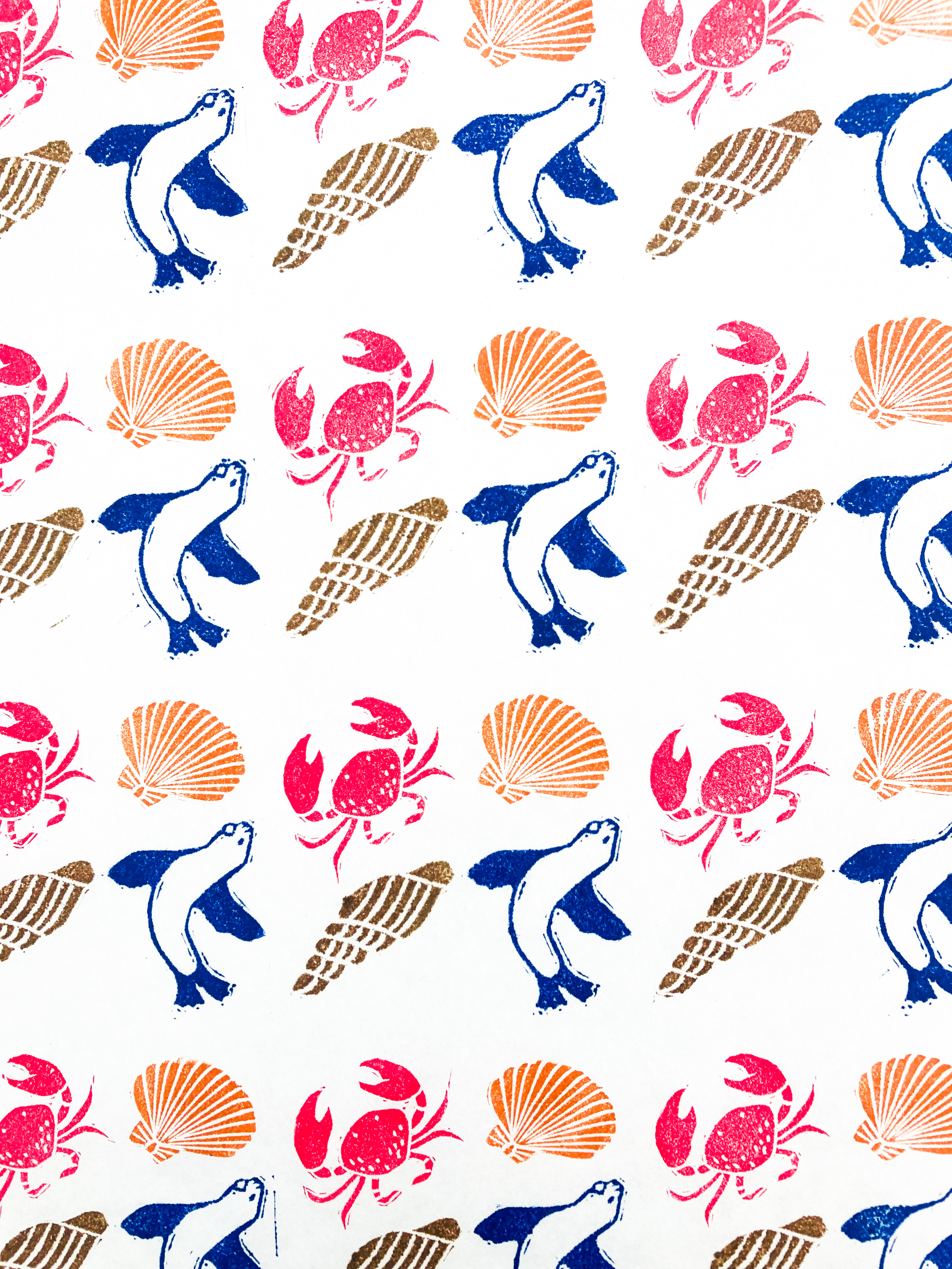 Sometimes we used to ‘camp’ on our sailing boat, and one weekend a seal took a liking to our dinghy! We had a mooring out on the river Orwell and needed a dinghy to get to the mooring. This seal wanted to use our dinghy as a bed and started to climb into it! We were quite worried about loosing our only way back to land so we needed to shoo him away. Luckily he swam away, and we fell back to sleep. Fast forward to the morning, and we were woken to the sound of banging against the boat. Mr seal was back trying to climb into his comfy bed! Our dinghy survived and we got back to shore safely. This seal print above was inspired by mr seal.